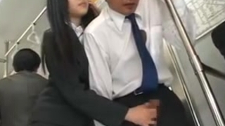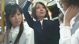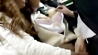 A Married Doll's Bra-stuffers Stick to a Student's Bod on a Crowded Bus! The Wife's Sexual Desire Is Ignited by the Schlong