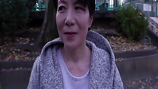 Mature 60-year-old stepgrandmother plays with a 27-yr-old cock, sucks it and rides it like a real breezy