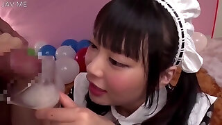 airi natsume guardando da far cadere la mascella un costume da cameriera ingoia sperma da un bicchiere