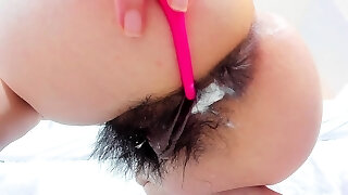 un e pazzo asiatico gal è giocosamente indagando il suo intimo aree utilizzando diversi giocattoli in un provocatorio film-jav xxx!