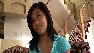 studente giapponese geme dolcemente mentre una macchina cazzo entra in profondità nella sua figa