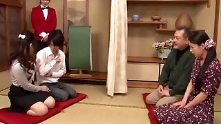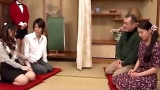 3 giapponese swinger coppie hanno prima pratica sessuale inbetween coppie in romp durante il viaggio