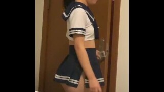 Lovely 18 year old dark-haired Chinese gets creampied in her naughty uniform and shaved pussy. There is also a suck off. U